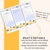 - Editable Fields: Customize the blue fields with your own text using Acrobat or simply print and write.